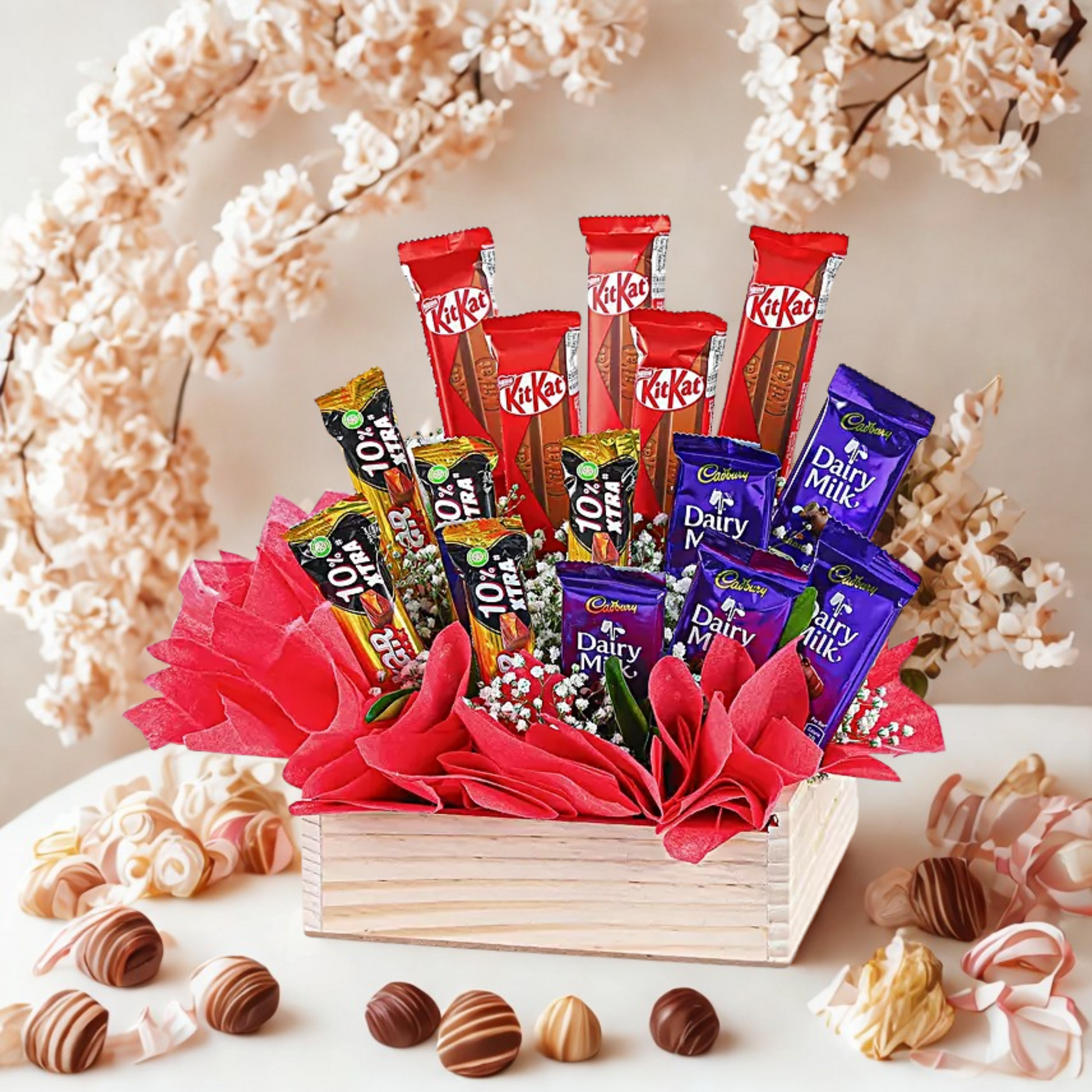 Present a distinctive gift of chocolates as a delightful gesture. This exquisite arrangement is designed to make your loved one feel exceptionally cherished during the season of love. Beautifully crafted with attention to detail, this tray of chocolates serves as the perfect expression of affection.